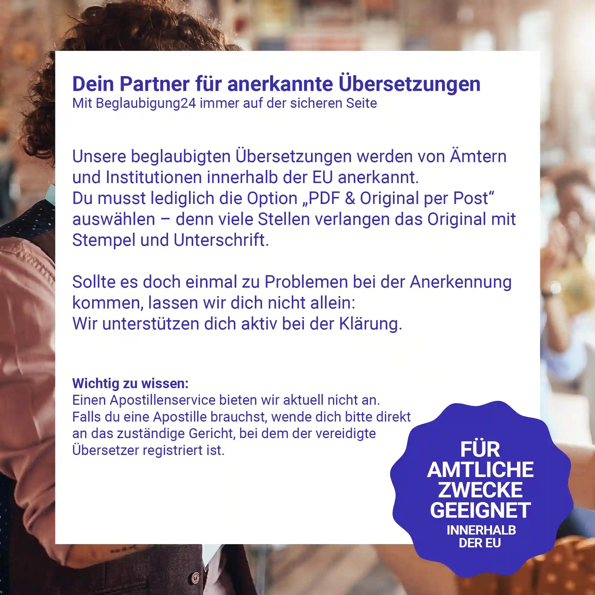 Wenn du bei Beglaubigung24 bestellst, bekommst du: