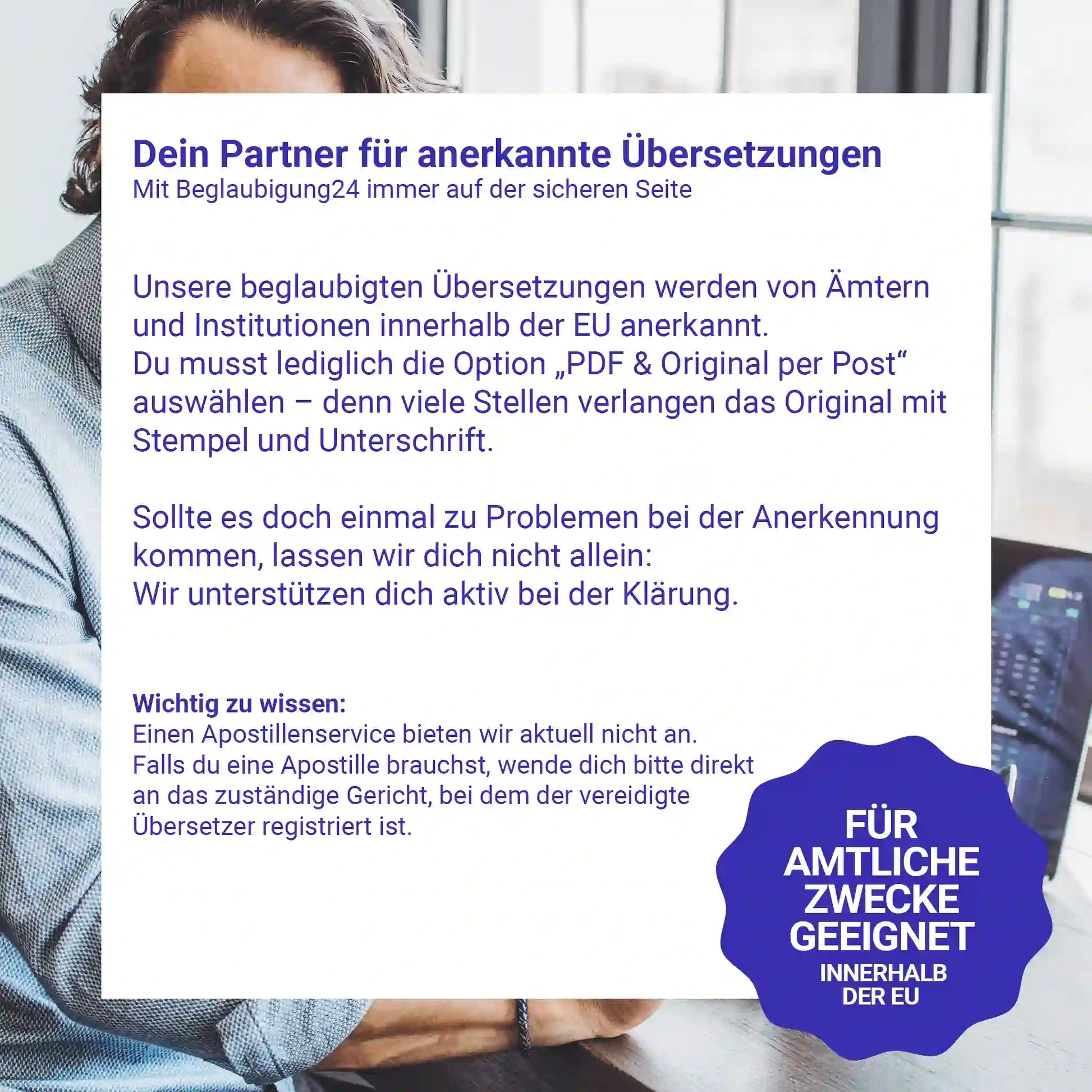Wenn du bei Beglaubigung24 bestellst, bekommst du:
