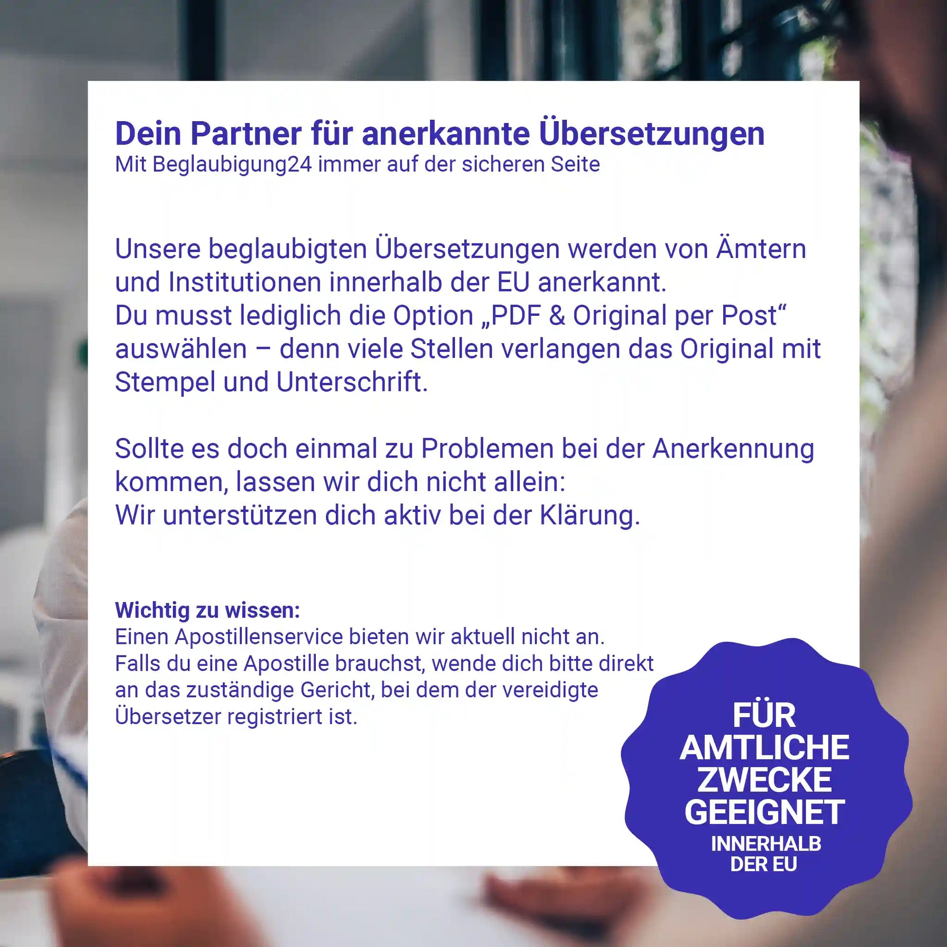 Wenn du bei Beglaubigung24 bestellst, bekommst du: